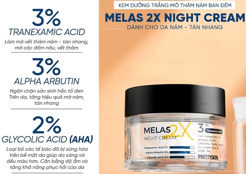Kem dưỡng Pretty Skin 50ml melas 2X nám ban đêm
